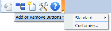 2. On the toolbar menu, click Add or Remove Buttons > Customize.