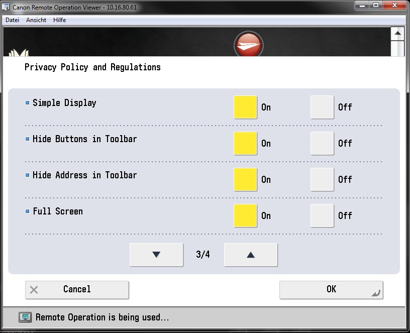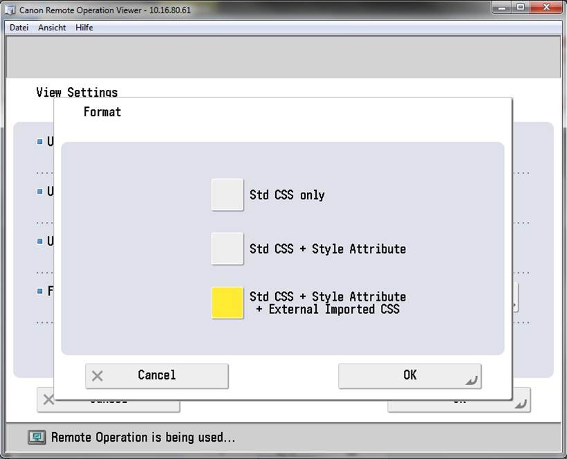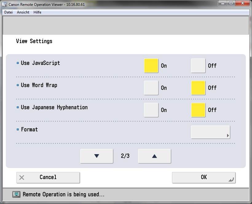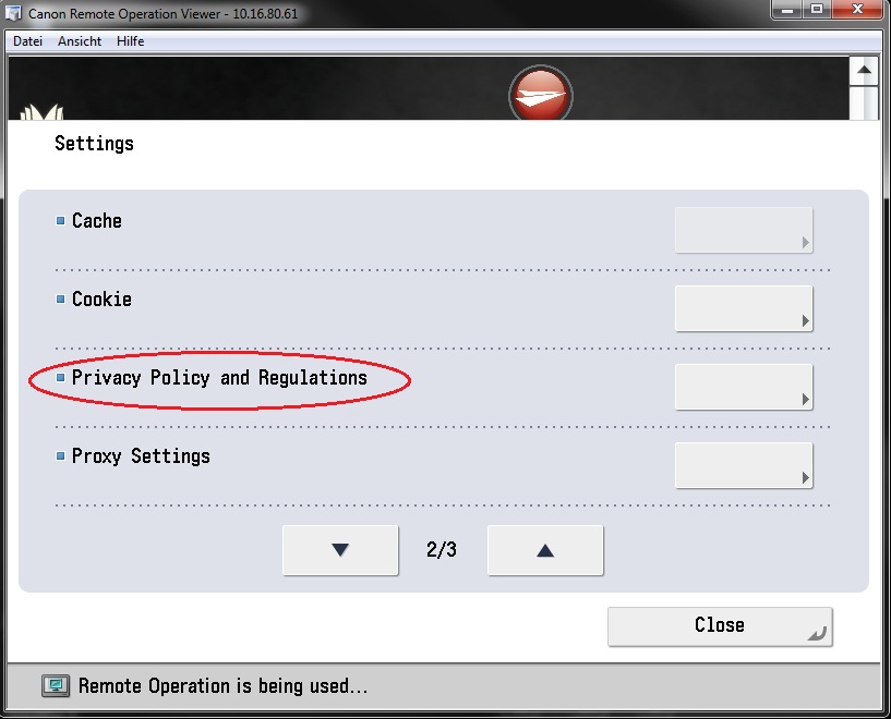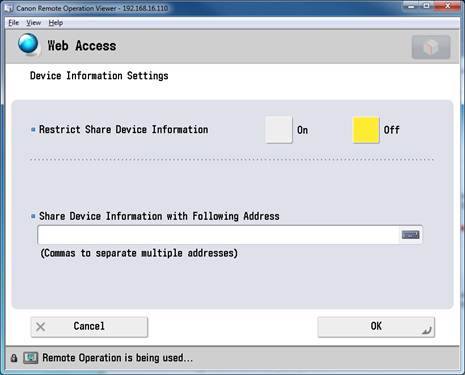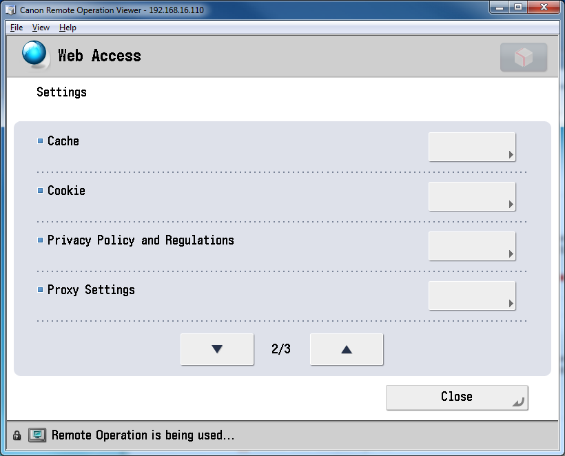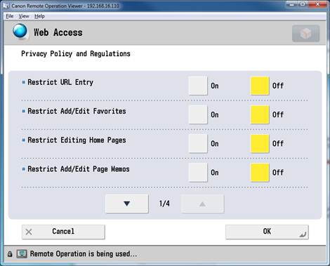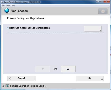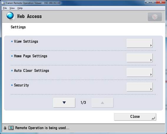 - On the Canon device, click Web Access.