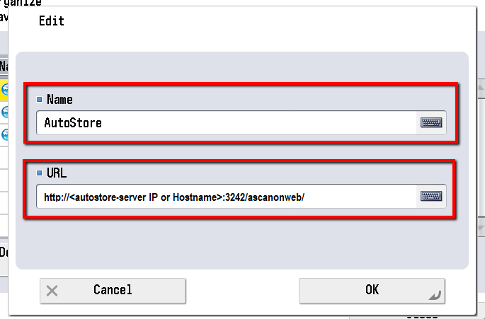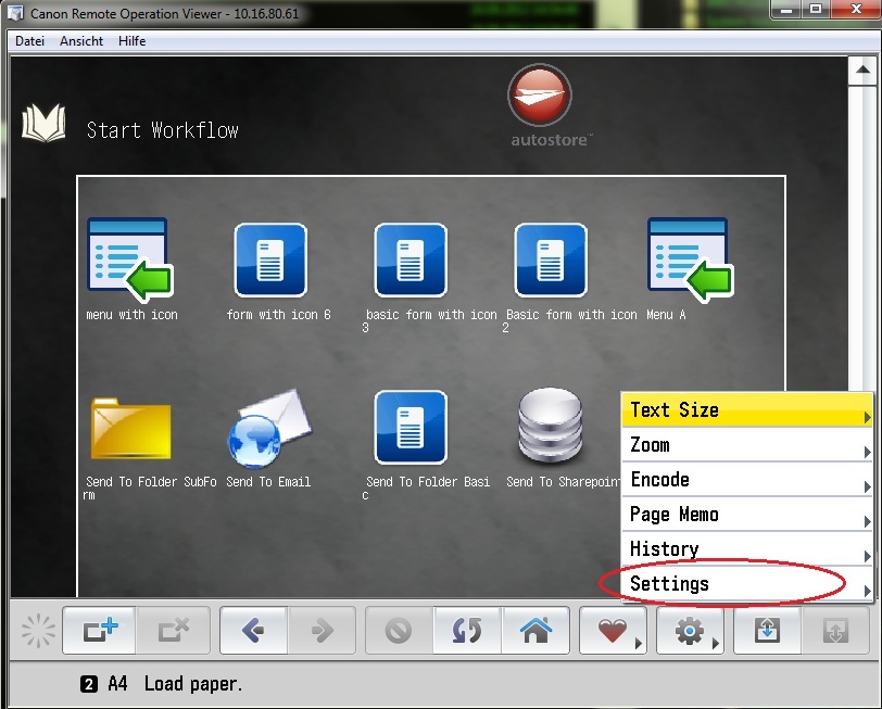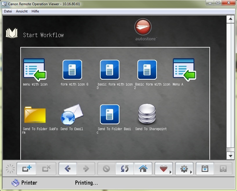 The bookmark now allows you to open the AutoStore integration for Canon.