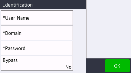 If Windows/Custom Script authentication is configured for your AutoStore capture workflows, the Identification Screen will appear as below: