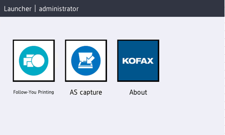 If Kofax Unified Client is the only menu, Launcher Screen will be displayed: