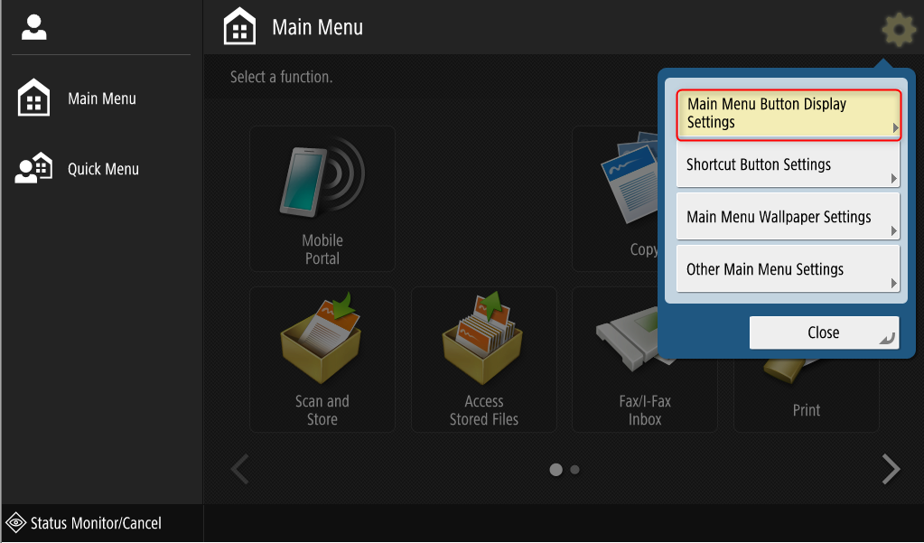Before you start: By default, the settings icon is grayed out. To enable it, go to Quick Menu > Personal > login as administrator on the login screen > Main Menu.