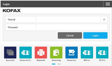 credentials or by using their cards at a Kofax Card Reader or third-party card