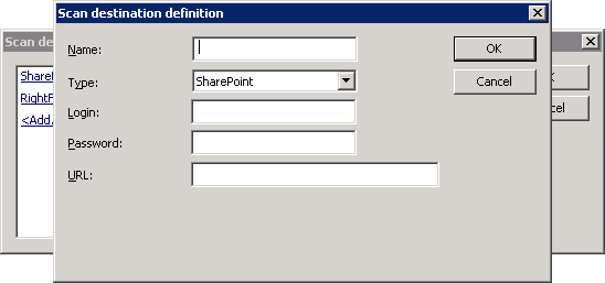 the scan destination fields in the Scan destination definition