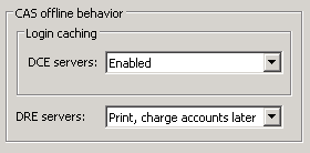 DCE login caching determines whether a user login is accepted or denied when CAS is offline. If DCE caching is disabled when CAS is offline, then users cannot login. If DCE caching is enabled when CAS is offline, then DCE allows users to login only if they had previously logged in when CAS was online.