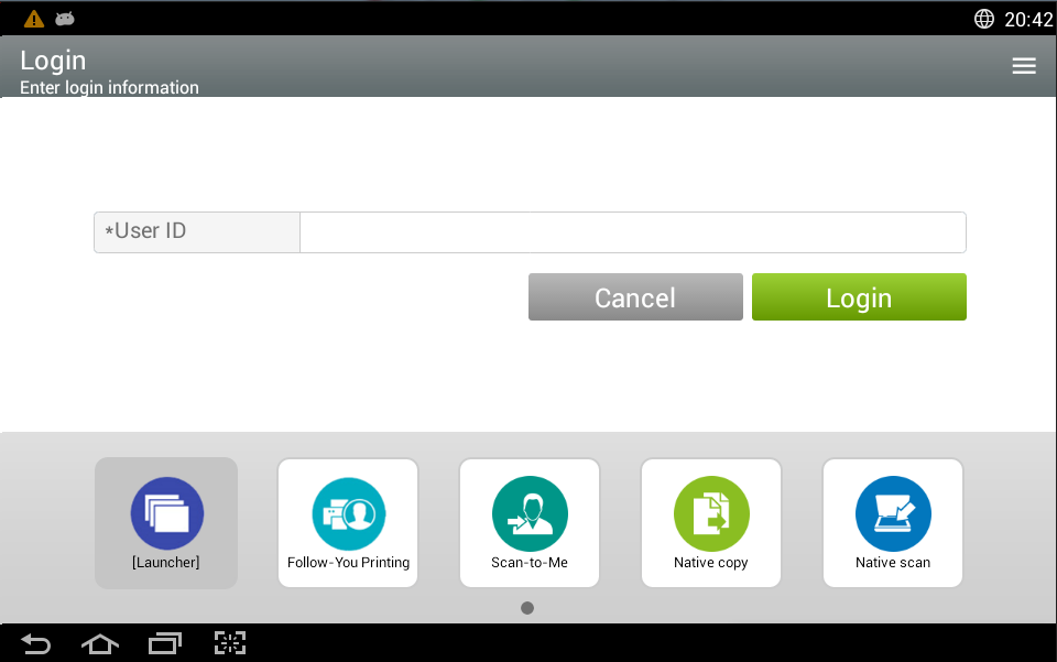 On this screen, users must provide valid authentication credentials before they can access the device functions available to them.