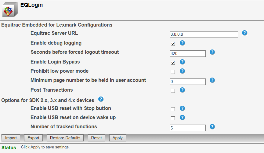 In the Equitrac Server URL field, enter the Equitrac