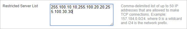 In the Restricted Server List field, add the