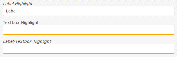 Figure 3 shows how the Interactive Capture web client form field can be styled using XFP. The “highlight” XFP has been assigned to each field; however, they each have their own combination of values assigned. The first field has a “label” value, which has resulted in the field label being rendered with an italic font. The second field has the “textbox” value, which has resulted in the field text box being rendered with a thicker bottom border and a more noticeable color. The last field has been rendered with both styles since it has both “label” and “textbox” as its “highlight” value.