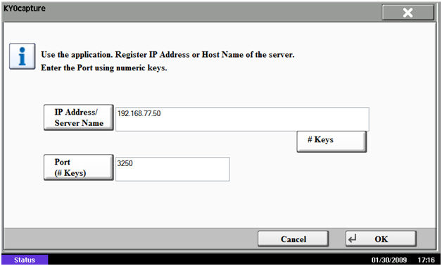 1. KYOcapture application allows changing the server IP address or port number following the occurrence of a communication error.