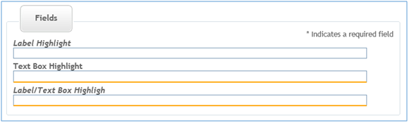 Figure 3 shows how the Web Capture web client form field can be styled using XFP. The “highlight” XFP has been assigned to each field; however, they each have their own combination of values assigned. The first field has a “label” value, which has resulted in the field label being rendered with an italic font. The second field has the “textbox” value, which has resulted in the field text box being rendered with a thicker bottom border and a more noticeable color. The last field has been rendered with both styles since it has both “label” and “textbox” as its “highlight” value.