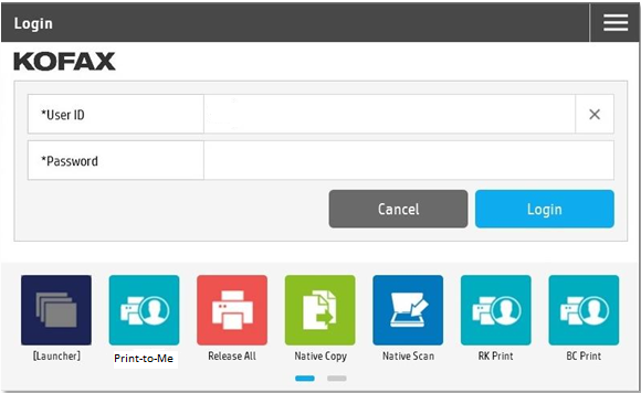 If the device is configured to show the HP home screen (typically caused by having an application with Guest access), users can trigger the login action by directly pressing on an application with a padlock icon. In this case, users are taken directly to the application after successfully logging in, if they have authorization.