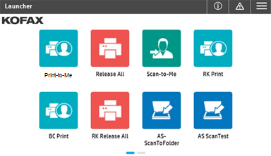 Unified Client for HP supports Equitrac authentication through user name and password, card identification (ID) with an optional personal identification number (PIN), and card swipe with an optional PIN, it also supports single sign-on (SSO).The Launcher screen appears.