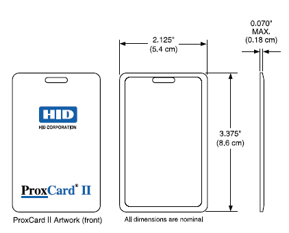 ProxCard II RF-programmable, 125 kHz, HID artwork, customer-specified ID numbers, vertical slot punch.