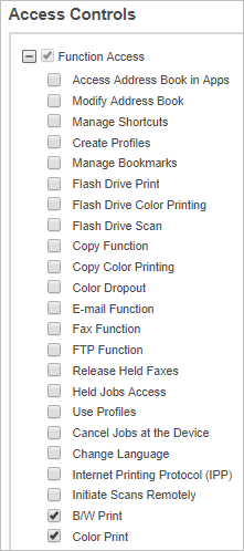 In the Function Access section, select the