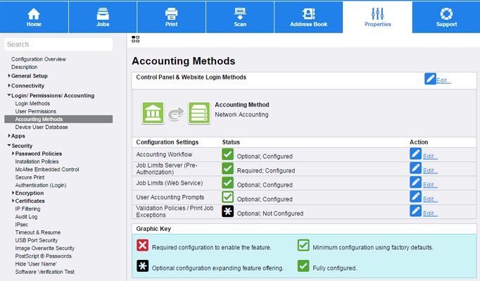 - On the Login Methods page, click Edit next to Xerox Secure Access Setup.