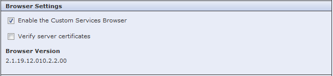 8. In the Browser Settings section on the Custom Service Setup page, ensure the Enable the Custom Services Browser check box is selected (it is by default), and click Apply.