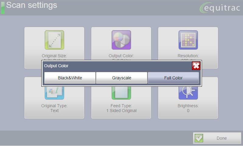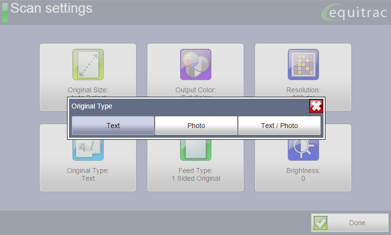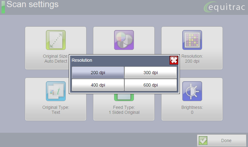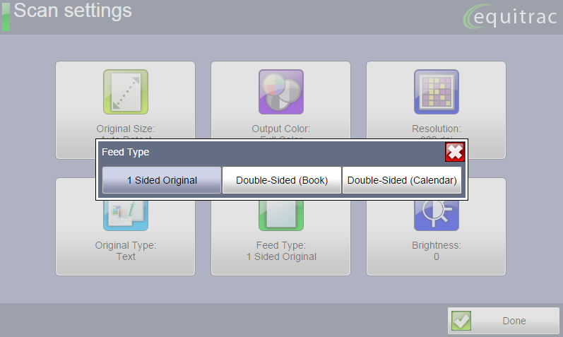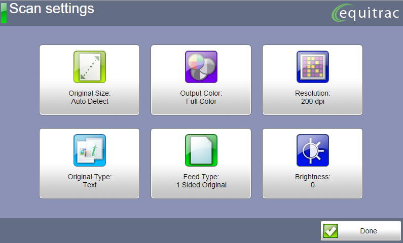 Regardless of the Scan Workflow, you are able to modify some of the default scan settings prior to scanning. Select any of the options on the screen to make the changes to the settings you require.