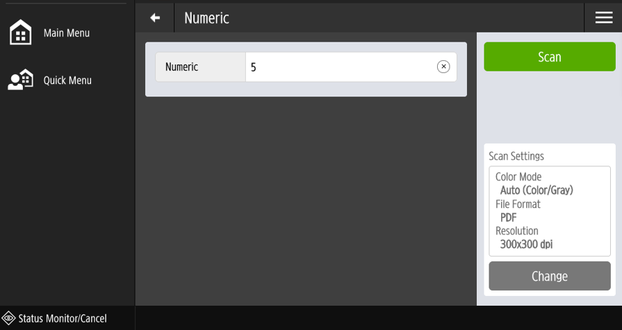 The numeric input is similar to the text input, but it is only possible to enter decimal numbers and fractions. Input is validated for format and range upon change and invalid entries are cleared.