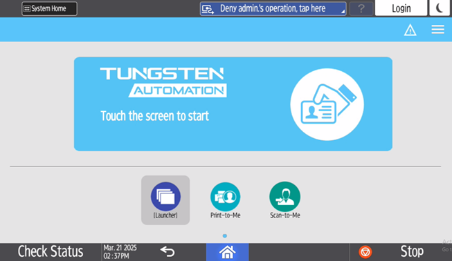 • Login button: Presents the login screen to authenticate and gain access to Ricoh PCC.
