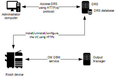 Unified Client for Ricoh Smart Operation Panel controls access to the device and acts as the gateway for Tungsten functionality. Users must authenticate to gain access to Tungsten-controlled device functions such as printing workflows. Device Registration Service (DRS) configures and deploys the embedded client to single or multiple Ricoh devices that are equipped with the Smart Operation Panel (SOP).