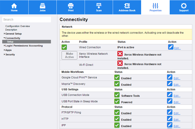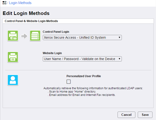 On the Login Methods page, click Edit next to Xerox