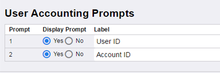 Click Edit next to User Accounting Prompts.
