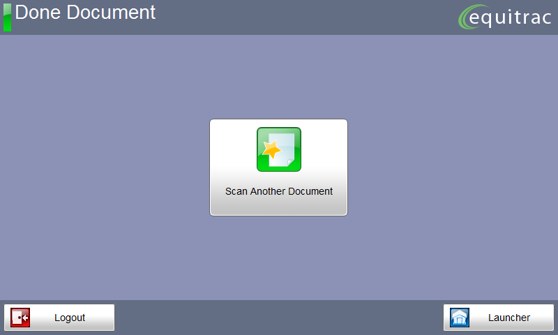 - Scan Another Document using the same Job Details as the previous or return to the Launcher to make another selection.