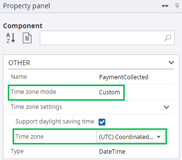 Select the PaymentCollected Not Converted field, navigate to the Property panel and clear the Convert to server time check box.