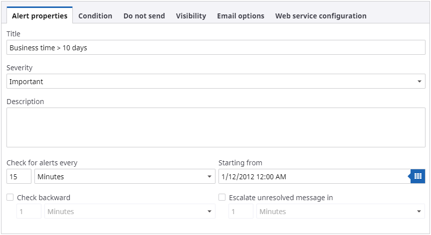 Alert properties tab: