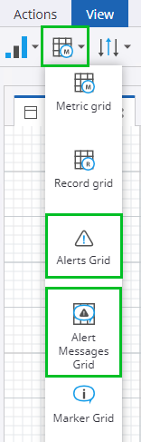 You need to use two components in Insight to manage alerts: alerts grid and alert messages grid. An alerts grid must be added to the dashboard so that alerts can be created in the Viewer. The end user can see these alerts in the alert messages grid.