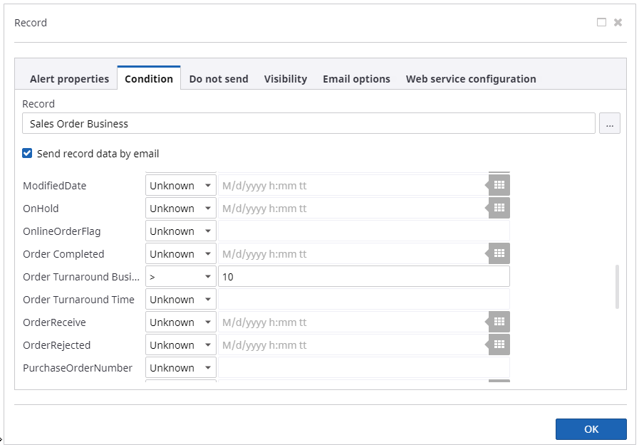 Configure an alert based on a record