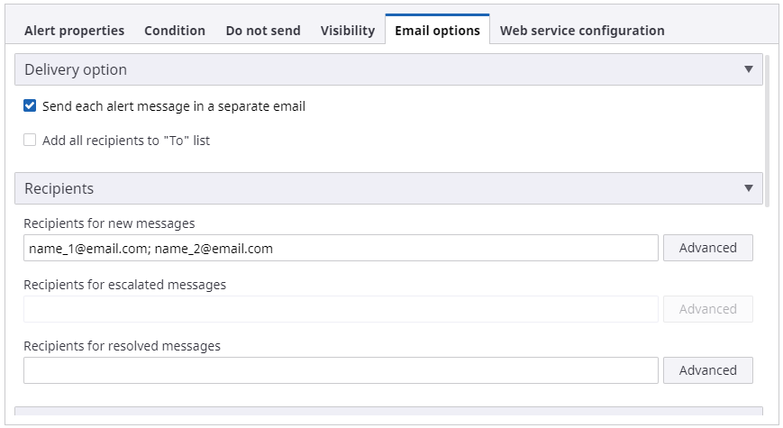 - In the Delivery option group, select the Send each alert message in a separate email check box.