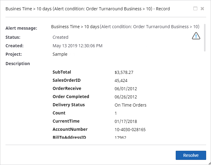 In Insight, you can configure alerts either to see on the dashboard or receive by email. In this exercise, you will create alerts that notify you when order processing takes more than 10 working days.