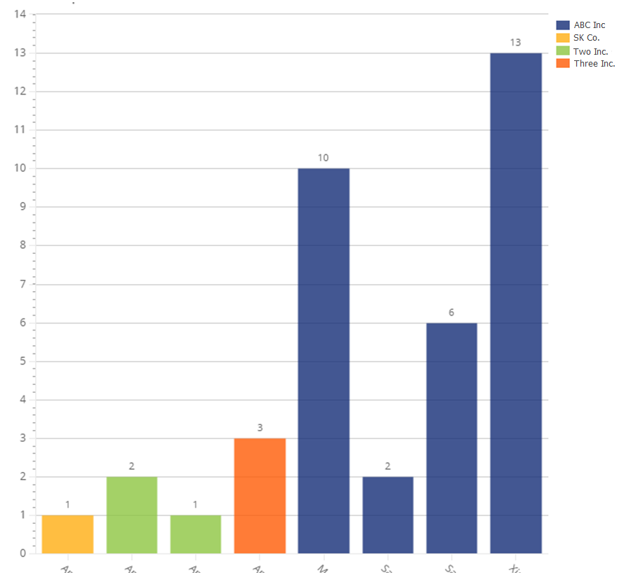 To view this same chart broken down by carrier, click the first bar. On the "Drill down" screen, select "Carrier" in the Drill down by options list and select "Drill down" in the "Orientation" list. Click OK.