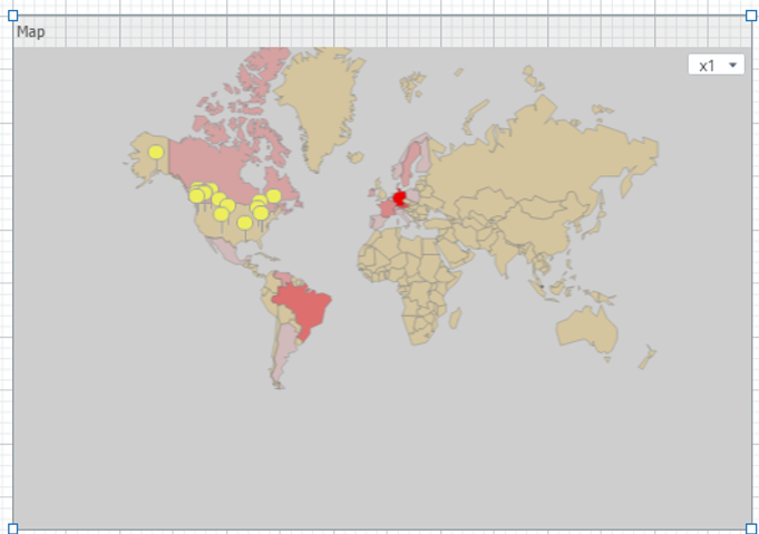 マップ コンポーネントを作成し、注文が出荷された米国の都市の国、収益、およびピンを表示できます。