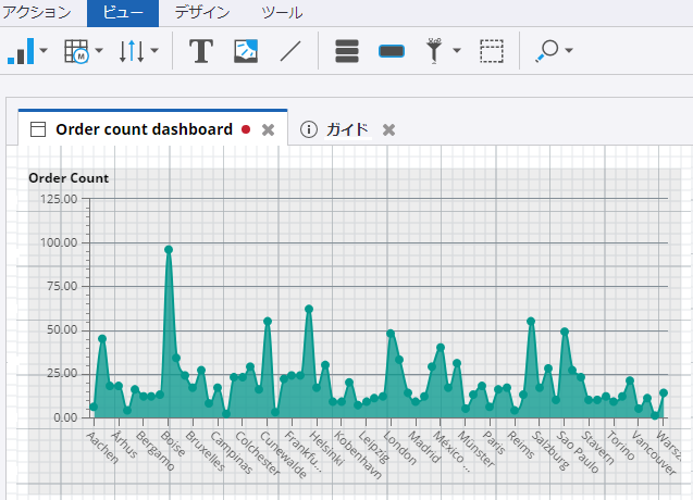 フィルタは、[プレビュー] または [Viewer で開く] モードでのみ機能します。この操作により、都市のリストが表示されますが、グラフ上のデータは変更されません。