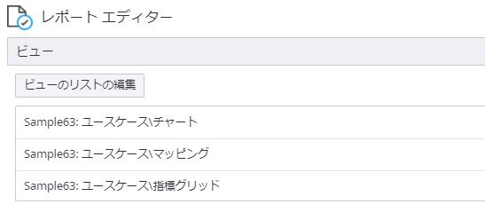レポートに複数のビューを追加するには、[ビューのリストの編集] をクリックします。[チャート]、[マッピング]、および[指標グリッド] を選択します。[OK] をクリックします。