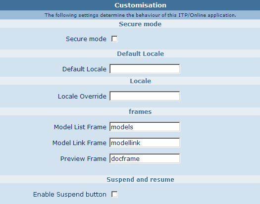 Master Templates in the Master Templates list frame are presented as links. To open the page Modelbegin in another frame referenced by a name, and click the link. This name is configurable as the "Master Template Link Frame". If a frame with this name does not exist, or if it equals the value _blank, the page Modelbegin is opened in a new browser window.