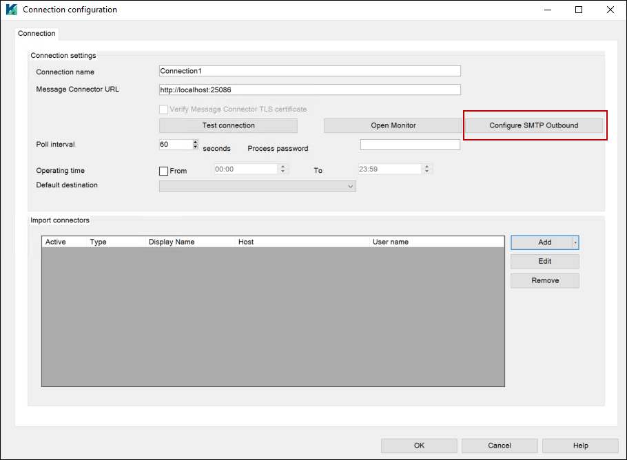 The parameters configured in the Configure SMTP Outbound screen will override the parameters configured in the Email outbound section of the Message Connector Configuration.