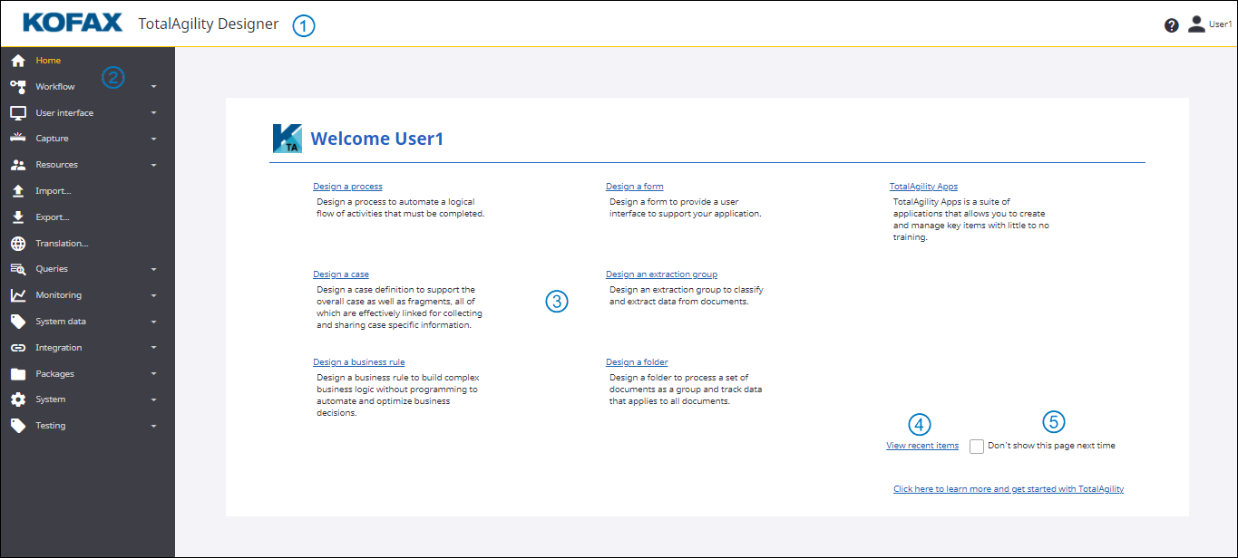 Click the Kofax logo from anywhere in the application to return to the Home page.