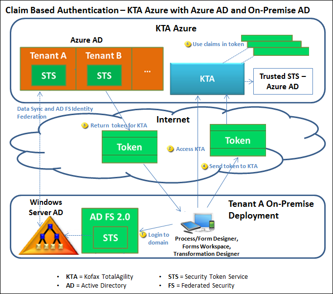 This scenario describes TotalAgility Azure with Windows Azure AD (as the federation provider) and on-premise Windows Azure (as an identity provider).