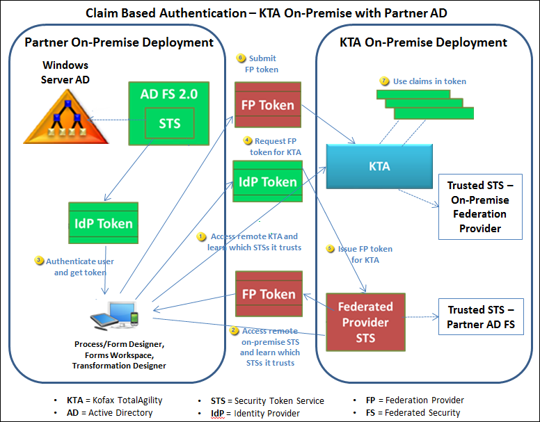 This scenario describes TotalAgility on-premise with Windows server AD FS 2.0 (as federation provider) and external Windows server AD FS 2.0 (as identity provider).