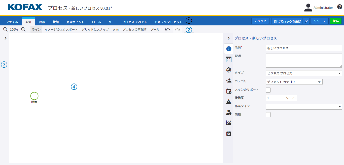 基本的なプロセス設計コマンドへのショートカットが表示されます。 |