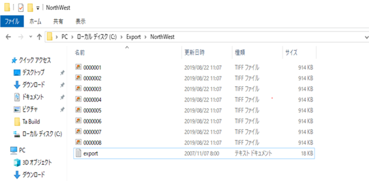 ドキュメントは、エクスポート アクティビティを使用して次のフォルダにエクスポートされます。