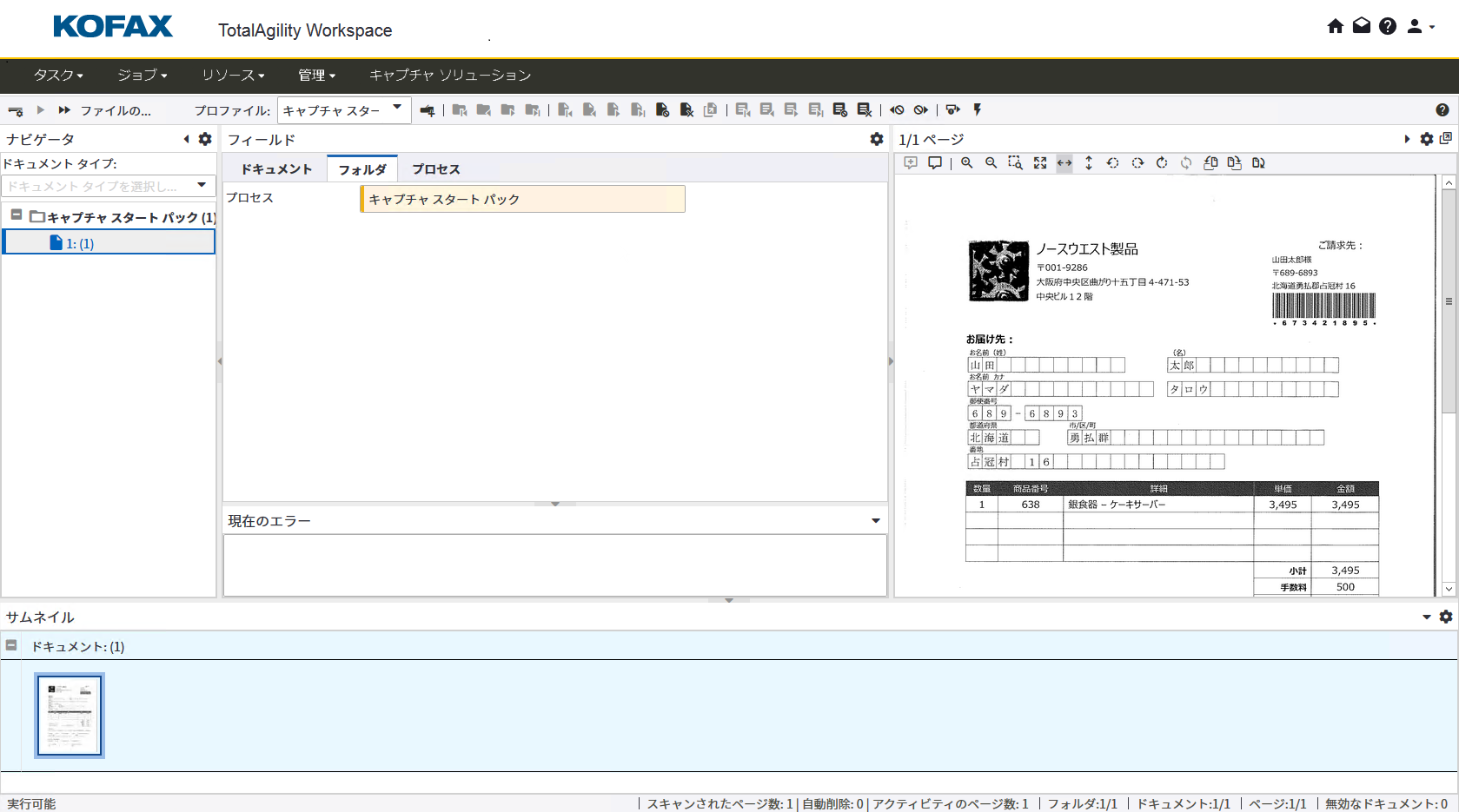注 このフォームを Web ファイルのインポートに使用します。Kofax TotalAgility の新規インストール時にフォームに初めてアクセスした際に、ファイルのインポート サービスをインストールするように求めるメッセージが表示されます。次のステップのスキャン ソースとしてファイルのインポートを選択します。