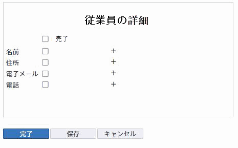 ここに挙げた例では、「Customer Details」(顧客詳細) と「Employee Details」(従業員詳細) という 2 種類のテンプレートに、共通して名前、住所、メール、電話のチェックリスト項目があります。