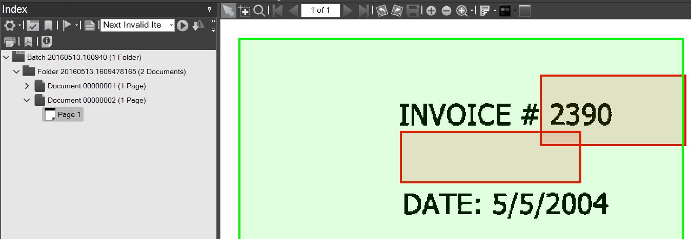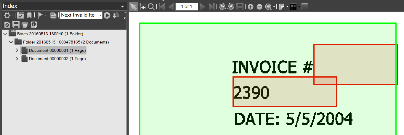 When you run a batch, the OCR Smart Zone picks up the invoice number from either of the two child positions defined.