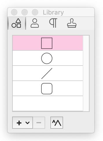 From the Library palette, drag and drop a built-in shape onto a document page, or double-click to add a built-in centered on the current page. Built-ins are also available from the Draw tools menu. (Toolbar).