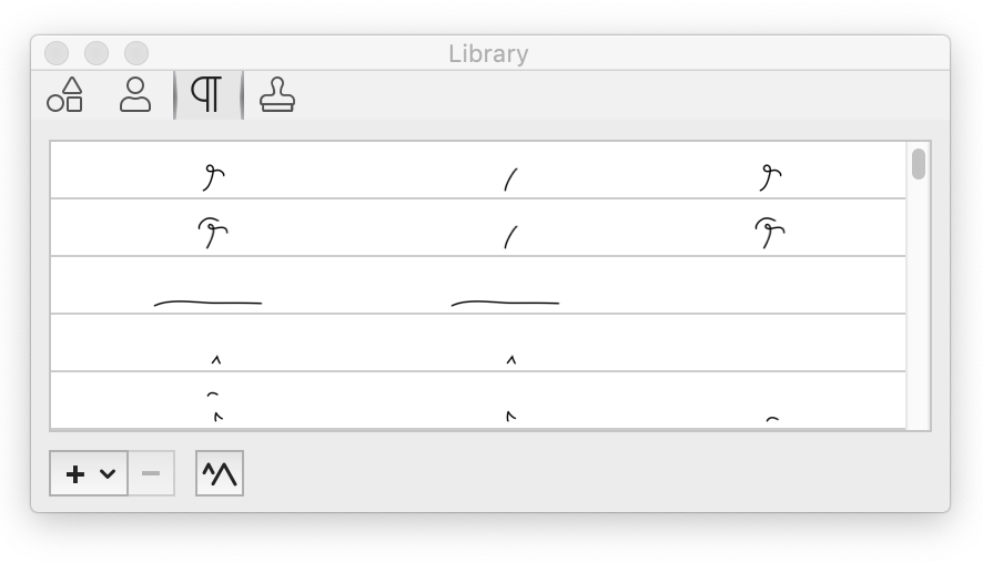 Drag these proofreading marks into your document. If you select a stroke color in Object Properties first, any proofreading mark you drag into your document will adopt that color.